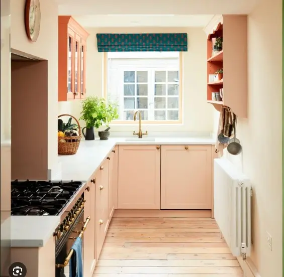 Suggested Changes: Cabinets: Replace existing cabinets with sleek, handleless metallic silver cabinets. Countertops: Install luminous, self-cleaning countertops with integrated touch controls. Cooktop: Replace traditional oven with an induction cooktop. Technology: Add a holographic projector for interactive cooking guides. Flooring: Install self-heating, dark gray tiles. Window: Replace with a smart glass panel. Garden: Integrate a vertical hydroponic garden. Lighting: Install LED strips in the ceiling and under cabinets. Heating: Replace the radiator with a floor-integrated heating system.