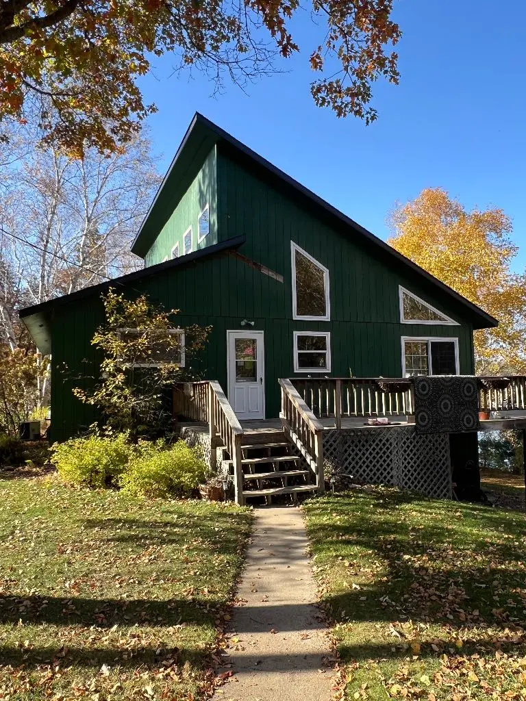 The proposed remodel transforms the exterior of the house into a modern, minimalist design. The existing green siding is replaced with light gray vertical siding, providing a clean and contemporary look. The roof is updated with a dark gray metal roof, enhancing the house’s curb appeal and durability. The front door is replaced with a solid wood door featuring frosted glass and sidelights, adding both privacy and natural light. The windows are upgraded to larger, energy-efficient models with black frames, improving thermal performance and aesthetics. The deck is expanded and modernized with composite decking and glass railings, offering unobstructed views of the surrounding landscape. The stairs leading to the deck are widened and feature integrated lighting for added safety and visual appeal. The landscaping is updated with native plants and gravel pathways, creating a natural and low-maintenance environment. The walkway leading to the house is replaced with large, rectangular pavers, providing a modern and inviting entrance. The house is approximately 30 feet wide and 40 feet tall, with the deck extending 10 feet from the house. The estimated cost of the remodel is $15,000, and the project is expected to take 4 months to complete. These changes enhance the functionality and aesthetics of the house, creating a modern and inviting exterior.