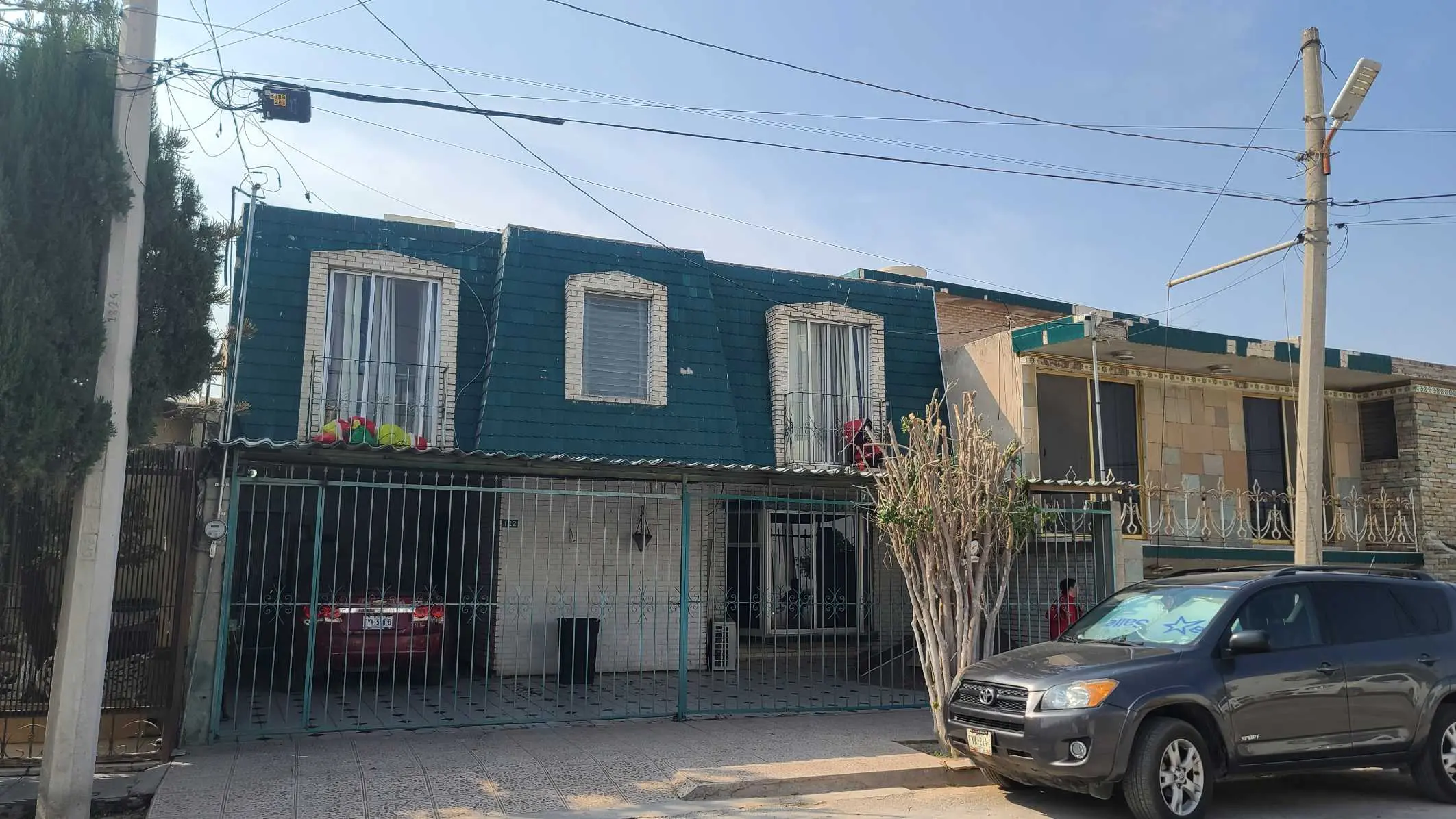 Suggested Changes: Roof: Replace the teal roof with dark gray slate tiles. Facade: Transform the facade with light beige stucco and dark wood trim. Windows: Install larger, energy-efficient windows with black frames. Balcony: Remove the wrought iron balcony. Entrance: Add a solid wood door with sidelights. Gate: Replace the metal gate with a modern, dark gray aluminum gate. Driveway: Pave with light gray concrete pavers in a herringbone pattern. Landscaping: Add drought-tolerant plants and a small tree.