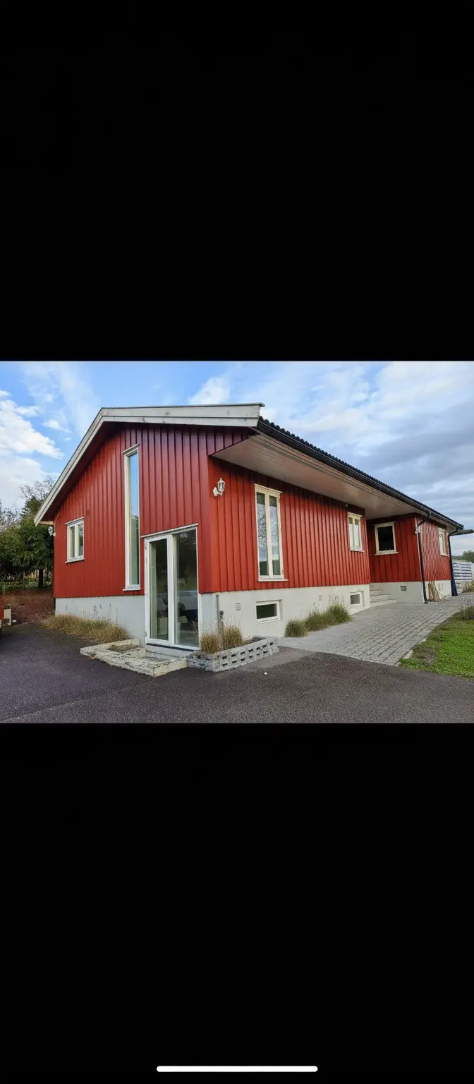 Detailed Remodel Description: This remodel focuses on enhancing the exterior aesthetics and functionality of a Scandinavian-style home. The existing small basement door (approximately 0.8m x 2m) is replaced with a larger, modern glass door (approximately 1.5m x 2.5m) to allow more natural light into the basement, improving its usability and appeal. The small windows (approximately 0.6m x 0.6m) are replaced with taller, vertically oriented windows (approximately 0.6m x 1.2m) to maximize natural light intake, brightening the interior spaces and enhancing the visual proportions of the facade. The landscaping is updated with minimalist plantings of native grasses and shrubs, creating a clean and contemporary look that complements the architectural style. The ground is covered with gray paving stones, seamlessly blending with the house’s foundation and providing a cohesive and modern aesthetic. The overall size of the house is approximately 15 meters long and 8 meters wide, with the visible facade being around 12 meters long. These changes aim to create a harmonious balance between functionality and aesthetics, resulting in a more inviting and visually appealing home.